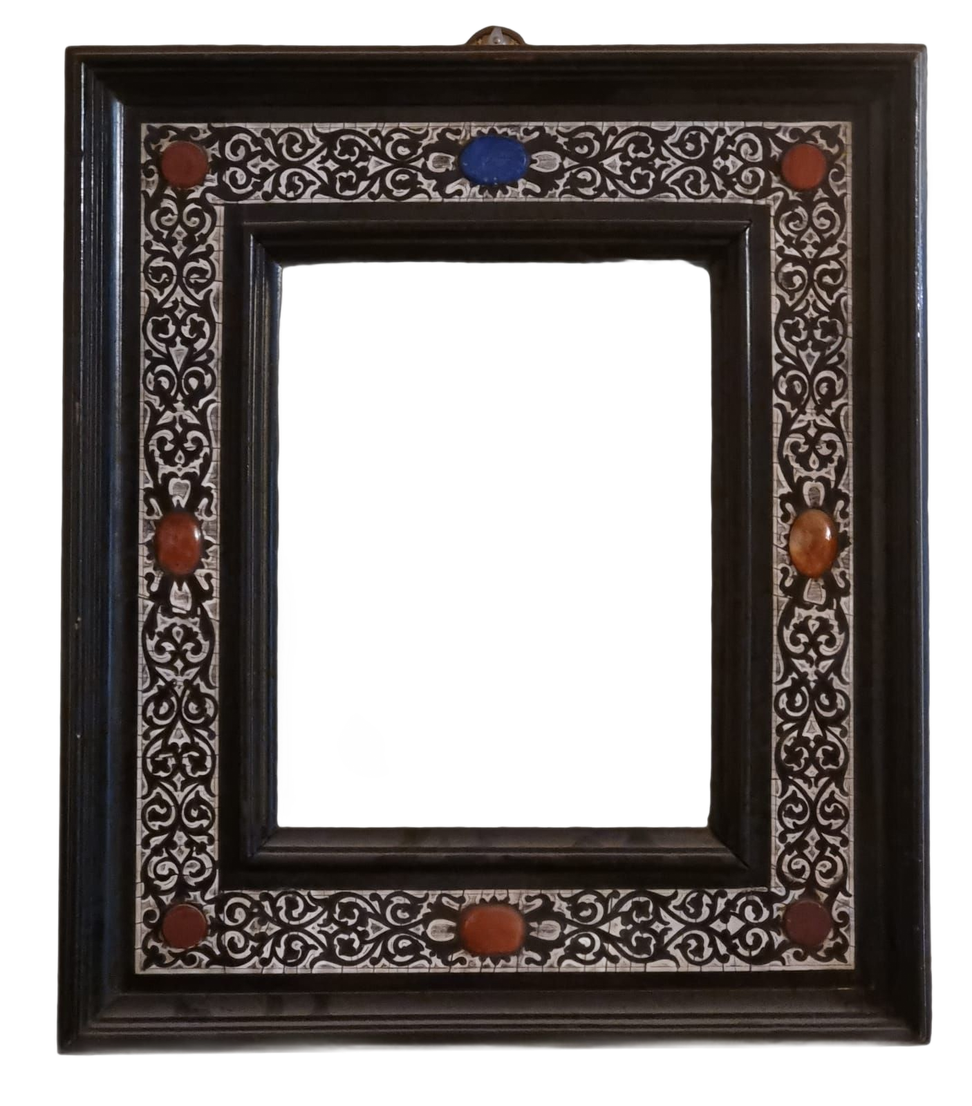 Cornice a cassetta in legno ebanizzato con inserti in pietre dure, inizio XVIII sec.