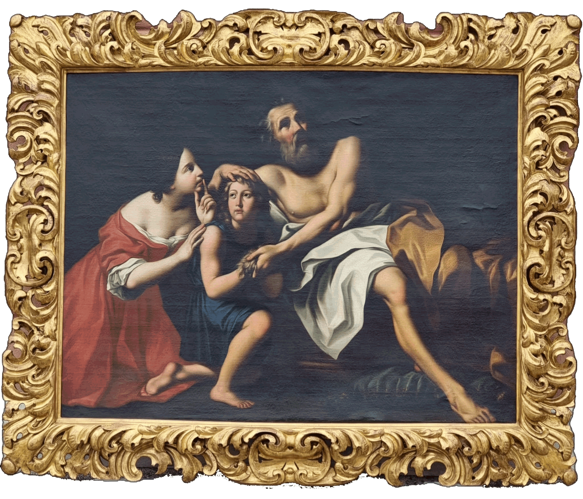 Dipinto raffigurante “Isacco benedice Giacobbe”, copia da Carlo Cignani, olio su tela, fine XVII- inizio XVIII sec.